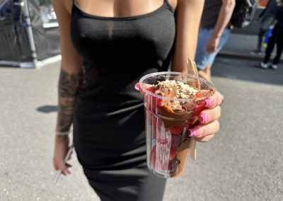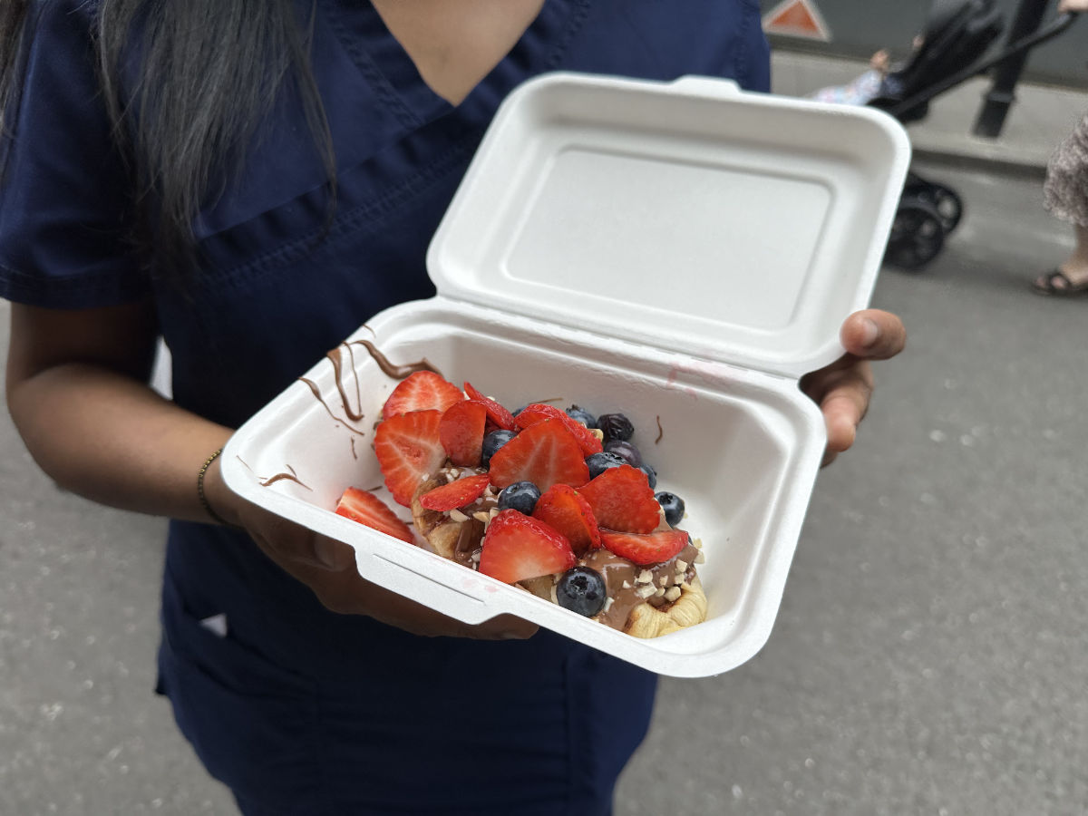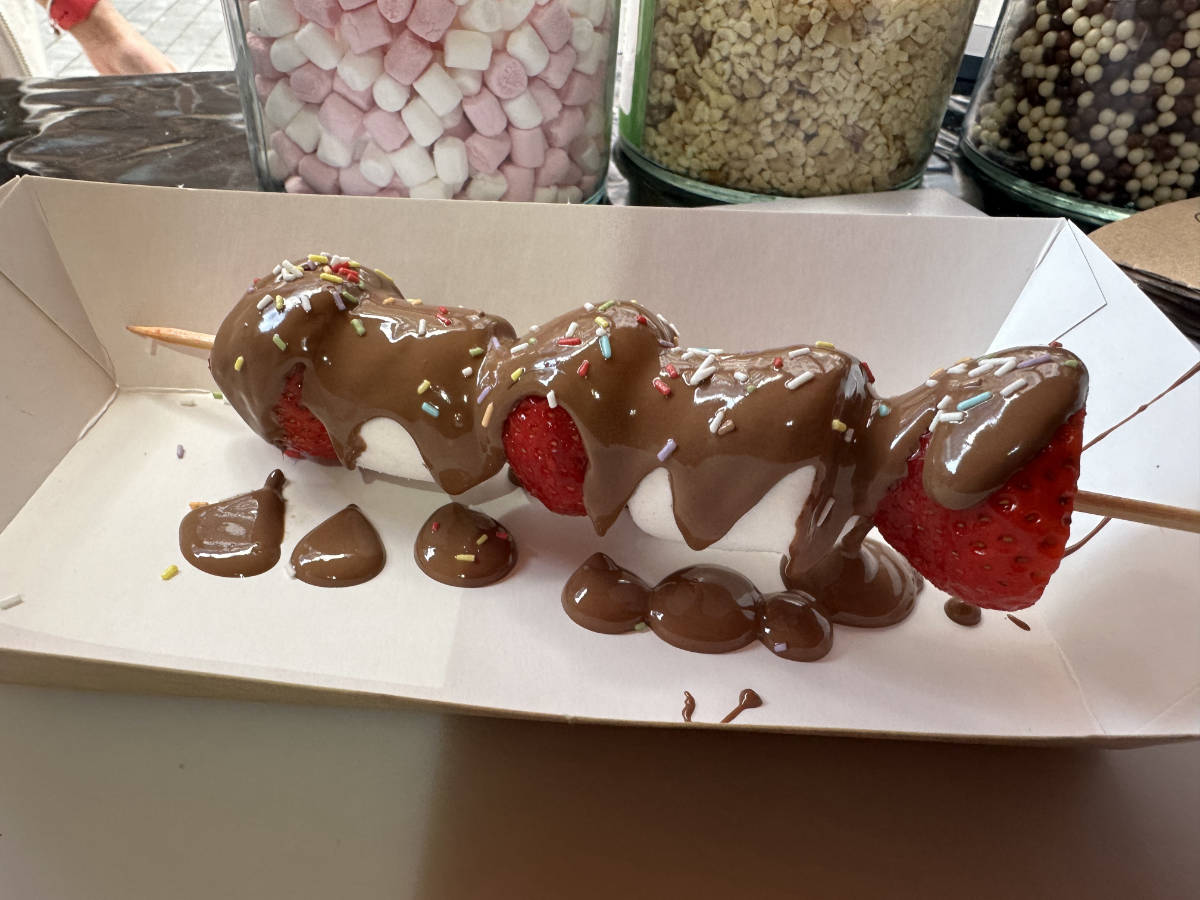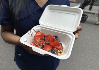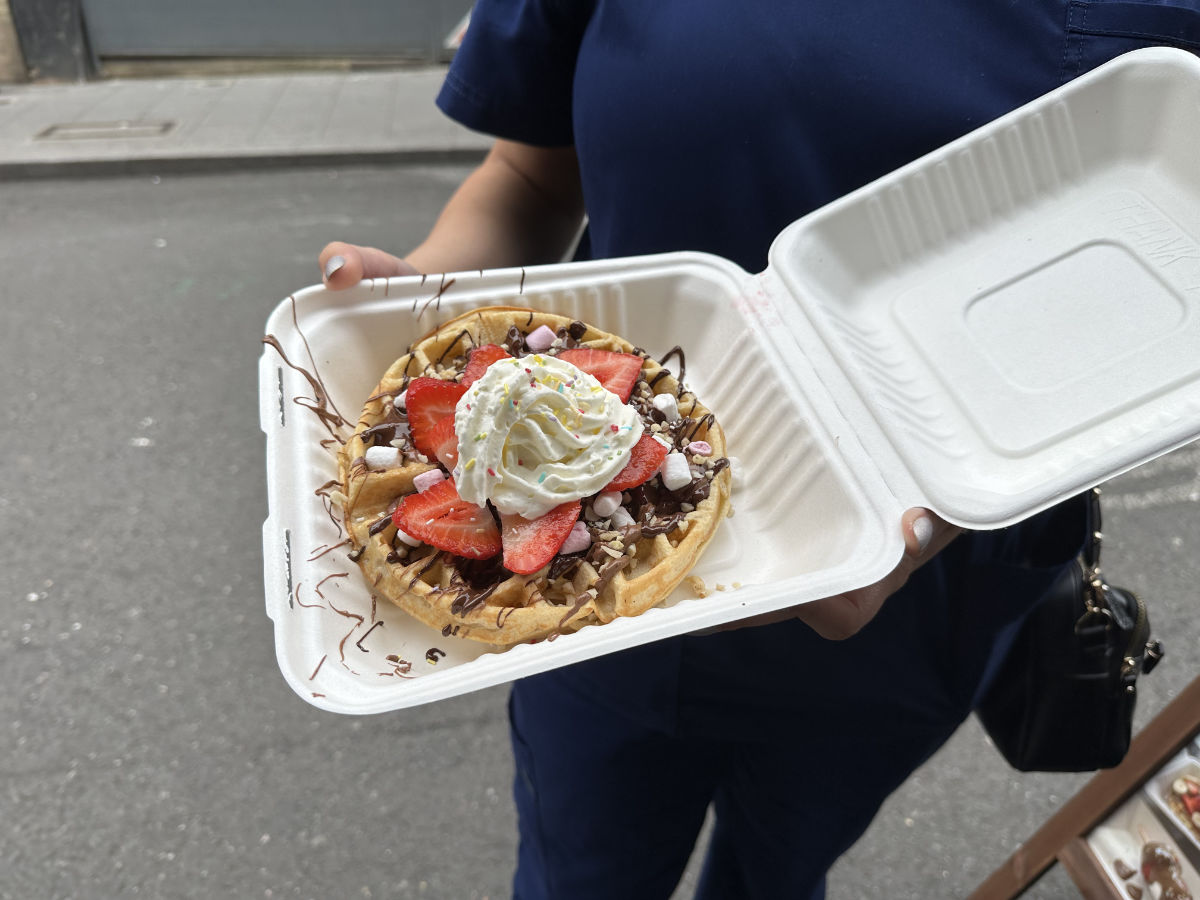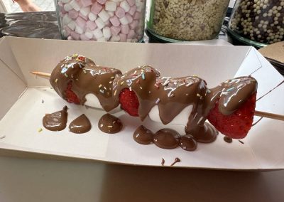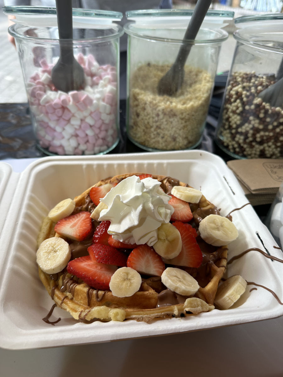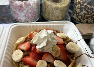 Fresh waffles topped with fresh fruit, melted luxury Belgian chocolate and a selection of toppings.